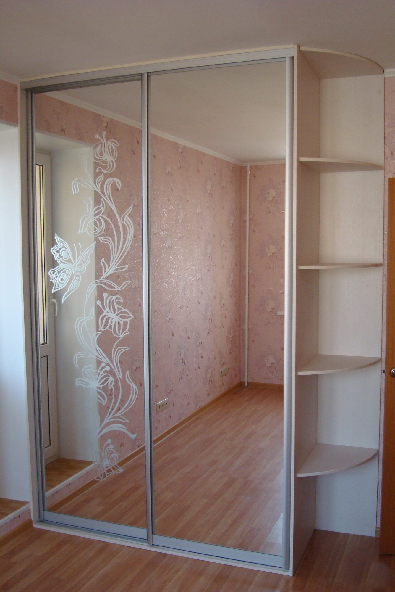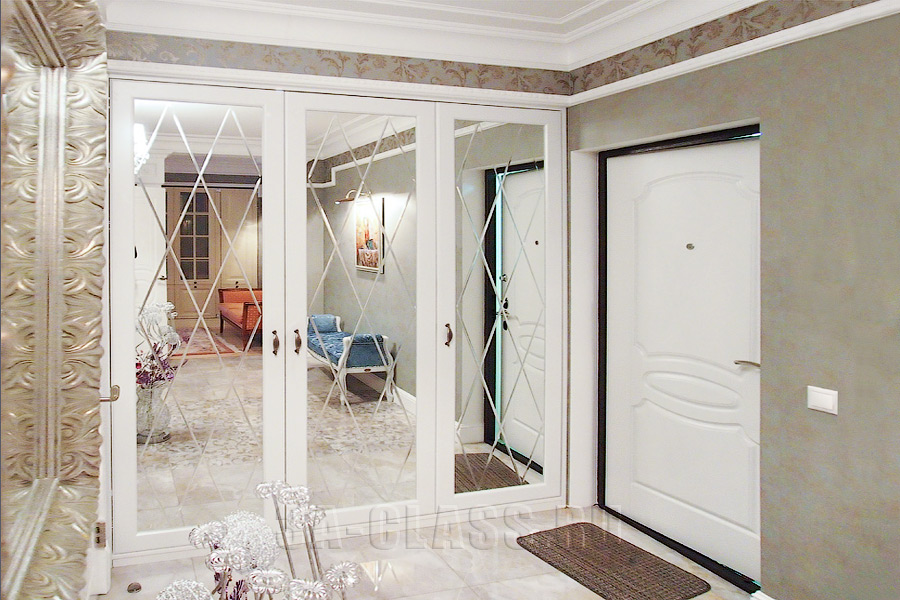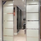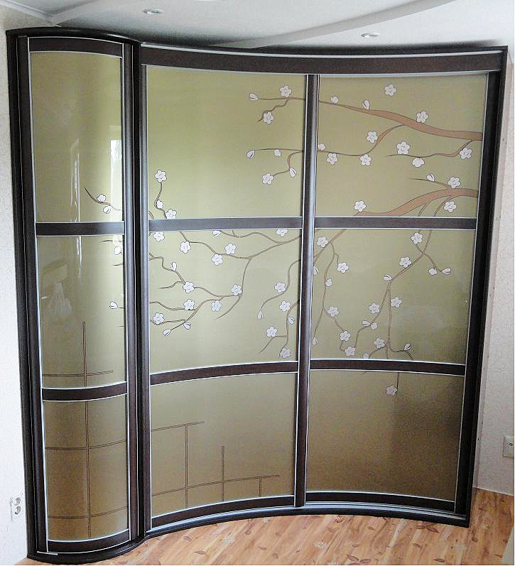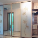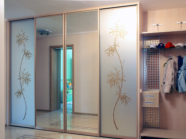 - grand choix de décor. Le verre peut être stylé de différentes manières: impression de photos, traitement au jet de sable ou au laser, peinture ou vitrail. Chacune de ces méthodes peut transformer la garde-robe en une partie unique de l’intérieur;