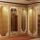 Il existe également une combinaison de lignes concaves et convexes. Sont établis sur n'importe quel carré et n'importe quelle forme. Habituellement, une légère absurdité et la complexité des proportions de la salle conviennent parfaitement à une telle garde-robe. Les miroirs portent dans ce cas un élément décoratif, car leur surface est déformée. Le matériau est soit emmêlé, soit couvert de motifs.
