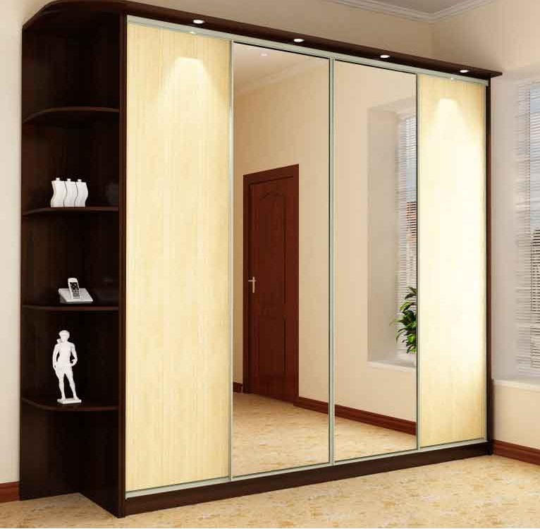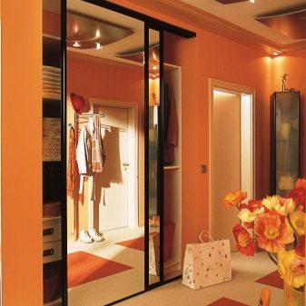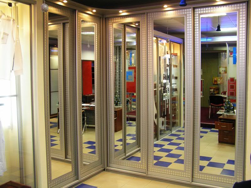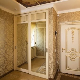 Les portes en verre et les miroirs n'affectent pas la fonctionnalité du meuble. Et la variété des choix n’est pas inférieure aux penderies en bois. Les plis peuvent à la fois réfléchir et augmenter l'espace. Par conséquent, il convient tout d’abord de porter une attention particulière à la forme et à la taille.