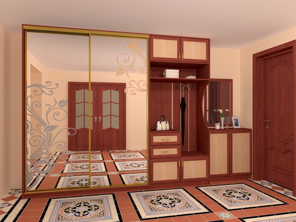 - intégré. Ces modèles sont des armoires «incomplètes». Et si vous vous demandez pourquoi la structure «incomplète» est simple, la réponse est simple: l'un des murs de la garde-robe est absent, mais le sol, le plafond ou le mur de la pièce est utilisé. Rappelez-vous que l’installation de meubles dans une certaine partie du couloir ne sera plus possible à l’avenir. Décor choisir sous le style de l'intérieur. S'il s'agit d'un petit modèle intégré, décorez-le dans votre garde-robe double. Si vous décidez d'installer une armoire à trois ou quatre portes, le décor peut varier.Par exemple, pour la conception classique du couloir, vous devez combiner des miroirs avec des revêtements en bois. Dans la modernité, il est préférable d’utiliser une ceinture avec des miroirs et des dessins sablés. Dans la "haute technologie", vous devez ajouter des détails clairs et davantage de plastique.