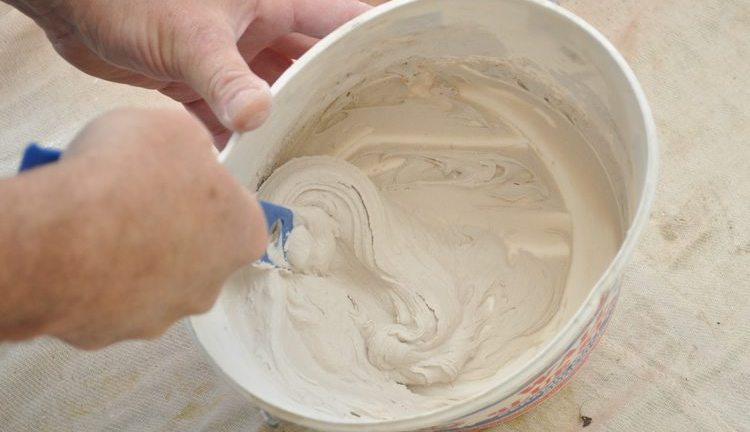 Les composants secs sont d'abord mélangés, puis la solution est versée dans le mélange de craie et d'additifs. Si vous utilisez du CMC, vous devez d'abord le diluer. Le mélange obtenu en épaisseur doit ressembler à la crème sure. Trop de liquide peut former des débordements. Le mastic prêt à l'emploi dans un récipient fermé ne doit pas être conservé plus de 12 heures.
