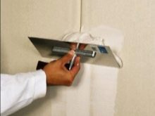 Utiliser des spatules pour l’application du mastic de départ. Préparez des outils étroits et larges. Si la surface est assez grande, il sera possible de prendre un appareil d’une largeur maximale de 600 mm.
