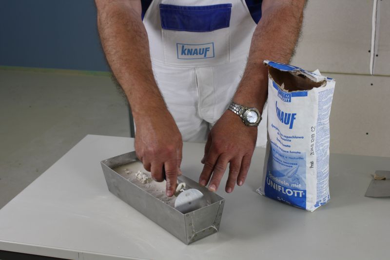 Mortier universel, composition spéciale créée pour le jointoiement et le traitement des joints de panneaux de gypse. En raison de la rigidité du revêtement, il n'est pas nécessaire d'utiliser du ruban de renforcement, ce qui vous permet de gagner beaucoup de temps, d'effort et d'argent. Comme tout autre mastic universel de Knauf, Ce matériau présente des caractéristiques exceptionnelles:
