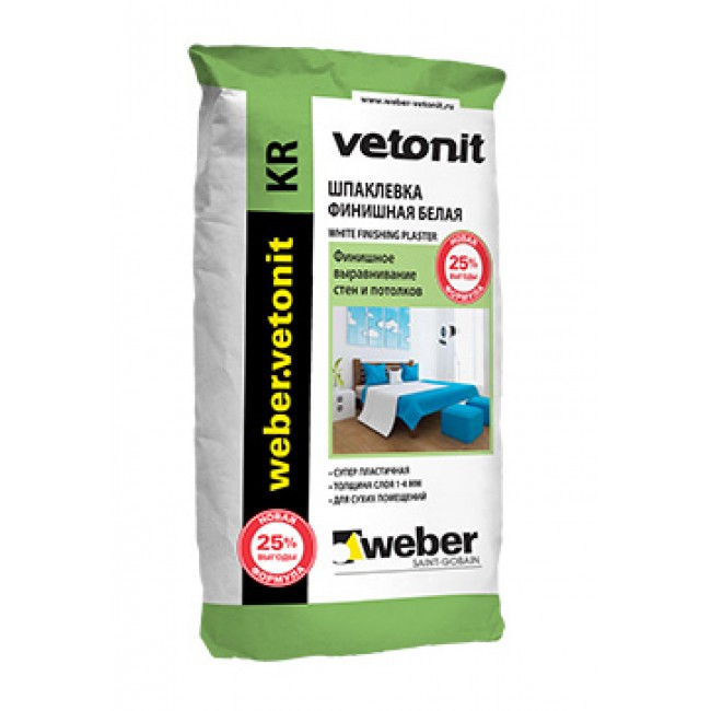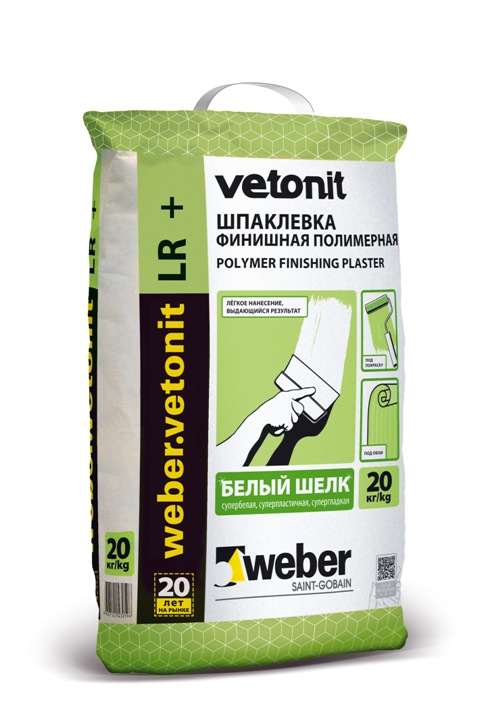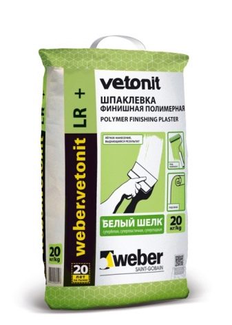 - Weber. Vetonit LR + soie - l'excellent choix pour la finition du traitement des murs et du plafond de la pièce. Le mélange est très rapidement dilué et appliqué en couche mince. Il a une blancheur élevée, pour laquelle il a été appelé "soie blanche". Les experts estiment qu'il est le plus pratique à utiliser.