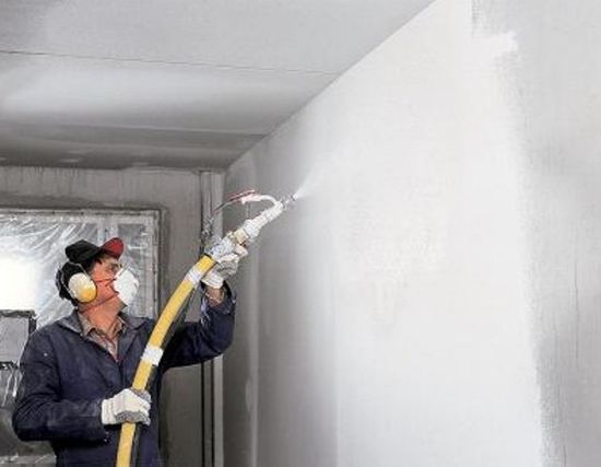 - manuellement, en appliquant le mélange fini sur une spatule et en le frottant sur la surface des murs.