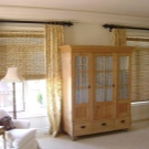 Si vous décidez de suspendre un grand rideau de bambou sur toute la fenêtre, sachez que vous devrez le suspendre au mur, au-dessus de la fenêtre. Il devra ouvrir toute l’ouverture sous la forme ouverte, en fermant les murs à 2-3 cm des bords.Habituellement, ces rideaux sont fabriqués sur commande. Dans les options toutes faites, vous pouvez choisir deux ou trois rideaux étroits qui seront suspendus les uns à côté des autres.