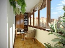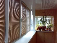 - Les rideaux en bambou - stores et rideaux - auront fière allure sur le balcon avec un vitrage moderne, surtout si les cadres sont en bois. C'est une excellente option pour un balcon standard ainsi que pour une loggia spacieuse où vous pouvez équiper un coin salon.