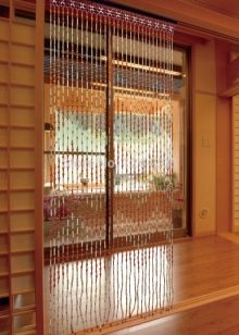 Par le look des rideaux de bambou sont horizontaux et verticaux. Horizontal souvent installé sur la fenêtre - juste sur le verre lui-même. Les verticales ne sont que des rideaux, qui sont généralement utilisés pour zoner de l’espace. Comme des perles, les morceaux de tiges de bambou sont enfilés sur des cordes - des rideaux de lumière sont produits, qui ne couvrent presque pas la lumière, mais différencient légèrement les pièces entre elles.Ils conviennent à la fois à la maison et dans les institutions - par exemple, dans les saunas ou les salons de spa.