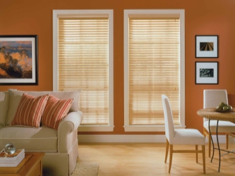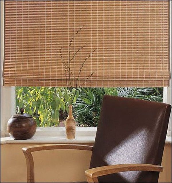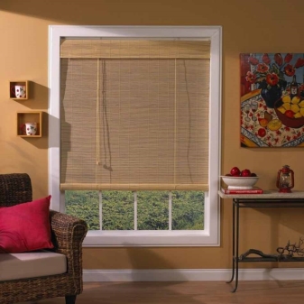 Pour ceux qui n'aiment pas plier la conception, créé des stores en bambou. Ce sont des stores horizontaux habituels dans lesquels les bandes (lattes) ne sont pas en métal ou en plastique, mais en matériau naturel.