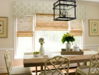Lors du choix des rideaux en tissu de bambou, il est important de prendre en compte la qualité du tissage et le système de levage avec lequel ils sont équipés. Tout est clair avec les stores - ils sont constitués de plaques et sont repliés vers le haut et vers le bas avec un cordon latéral.