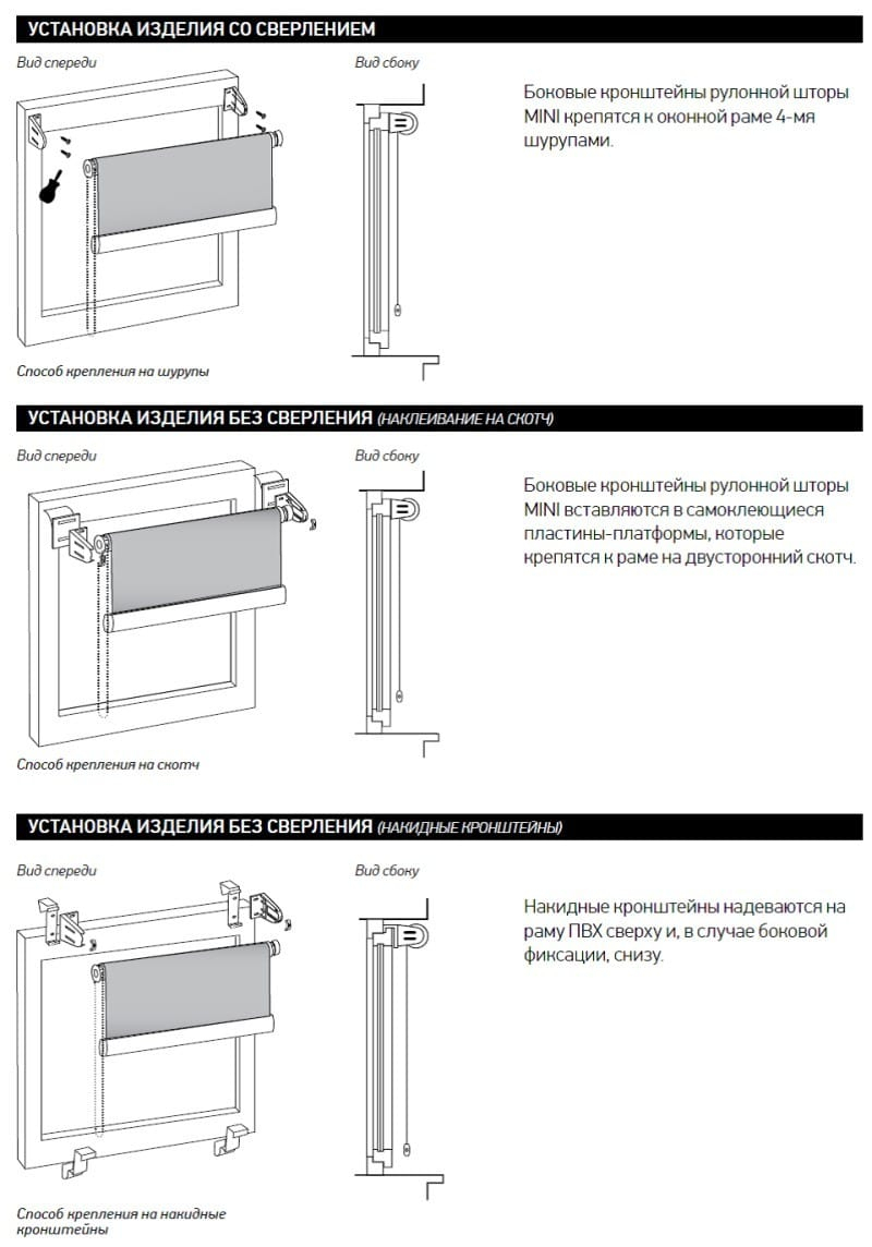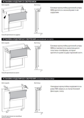 Habituellement, le mécanisme de montage est simple et direct. Un bon fabricant a toujours un sac avec des attaches attachées aux rideaux, afin de ne pas aller faire les courses à la recherche d'une vis appropriée.
