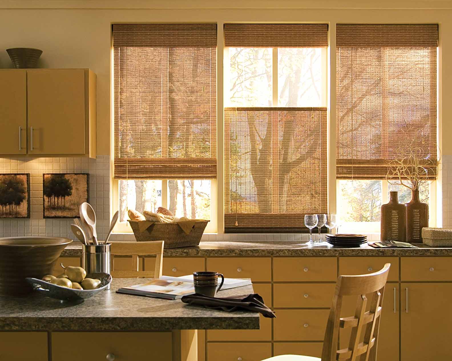 Lors du choix, il est important de prendre en compte la qualité de la toile. Faites attention au tissage. Une paille peut être située étroitement l'un à l'autre, et rarement. En conséquence, il transmettra plus ou moins de lumière. Il est logique que pour une chambre à coucher ou une chambre d'enfants, il soit judicieux de choisir des options denses, mais sur les fenêtres en plastique de la cuisine, vous pouvez également suspendre un rideau «rare».