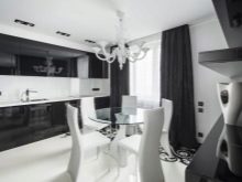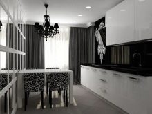 Tout le monde ne risquera pas de suspendre des rideaux noirs à la maison. La plupart de ce ton repousse et alarmant. Il est souvent utilisé dans la conception de locaux résidentiels et non résidentiels, mais il est rarement utilisé comme principal.