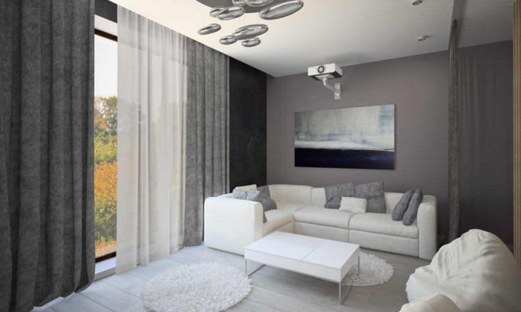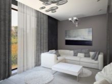 Sur la base du style scandinave, les rideaux ont fière allure avec des couleurs achromatiques - blanc et gris. Pour ce style, peu importe la densité du matériau textile, qu’il s’agisse d’un matériau translucide ou très dense.