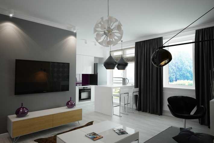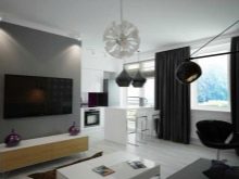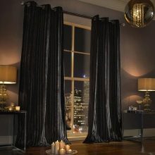 Tout le monde connaît une tendance aussi moderne que le minimalisme. Par nom, il n’est pas difficile de deviner que c'est un style discret et laconique dans lequel il n'y a pas de place pour une abondance de bijoux et autres objets de décoration. Les rideaux noirs s'intégreront parfaitement à cet intérieur et seront en harmonie avec les meubles et les autres attributs de la situation. Une telle nuance de rideaux est souhaitable de choisir si la salle est décorée avec des couleurs vives et les couleurs noires n'affecteront pas le confort et l'espace.