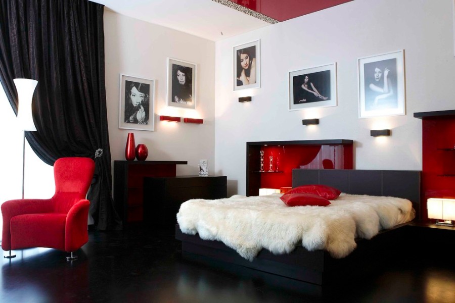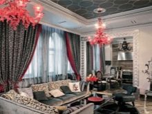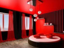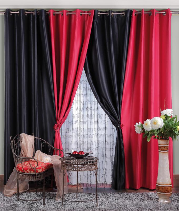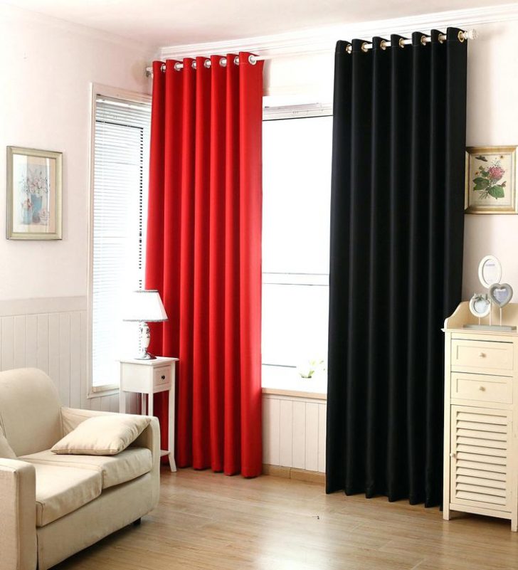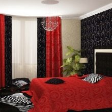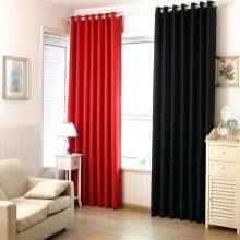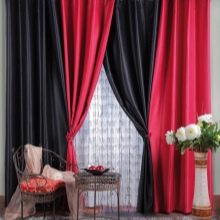 - Rouge Le rouge vif avec le noir est audacieux et passionné. Ces rideaux doivent être très soigneusement placés dans la pièce. Cette option sera particulièrement impressionnante sur le fond de murs clairs ou blancs. Les rideaux denses de tissus épais en noir et rouge peuvent sembler sombres, alors soyez prudent lorsque vous choisissez des tissus. Les rideaux rouges et noirs peuvent être utilisés comme un accent dans la pièce.