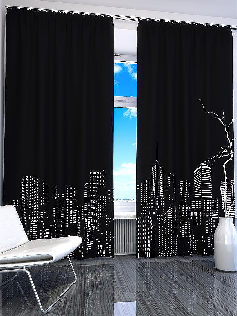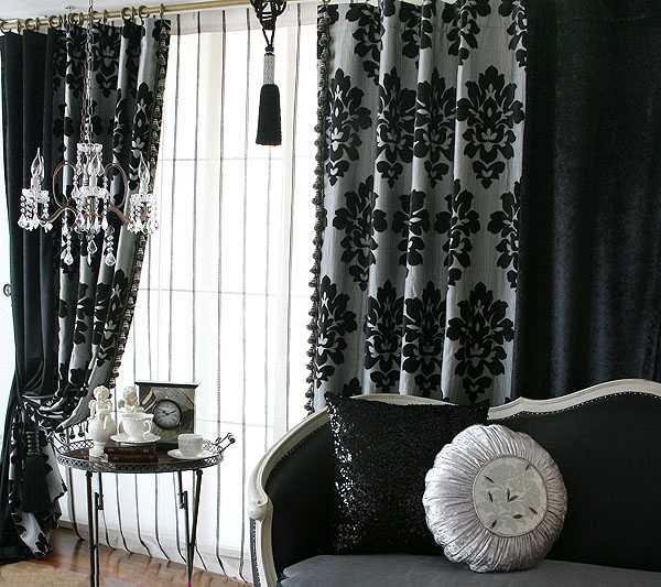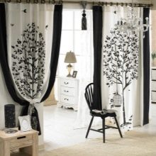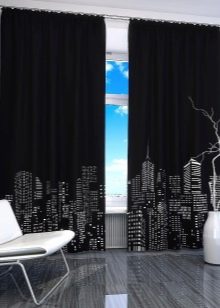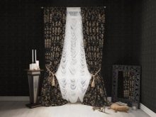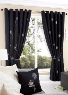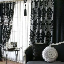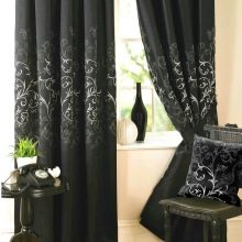 - Rideaux noirs, unis ou à motifs, les fans choisissent des techniques de décoration inhabituelles et non standard. Étant donné la rareté de l'utilisation de tels rideaux, les invités de votre maison vont certainement y prêter attention.