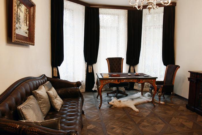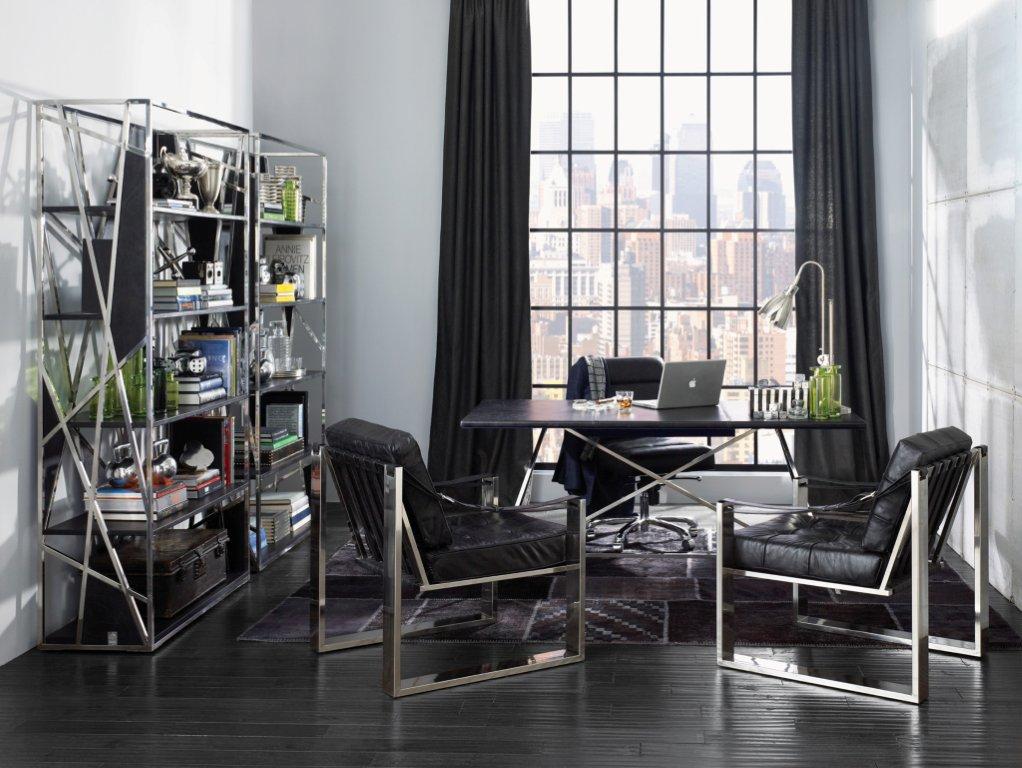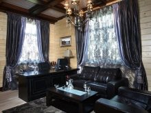Les rideaux noirs, droits et stricts, peuvent constituer une décoration élégante pour une étude. Avec leur aide, vous pouvez facilement créer une atmosphère isolée dans laquelle il sera pratique de travailler sans être distrait par des facteurs extérieurs.