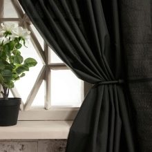 Les rideaux monochromes noirs ne sont généralement utilisés que dans certaines directions stylistiques. Les concepteurs signalent que les rideaux de cette couleur ne correspondent pas pour Provence, Pays, Éco, Africain, Antique, Ethnique, Méditerranéen, Colonial. Néanmoins, il existe certaines stylistiques, où de tels rideaux seront appropriés et attrayants.