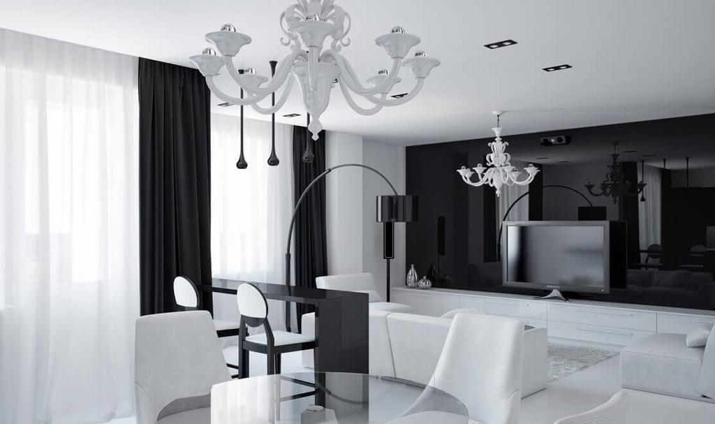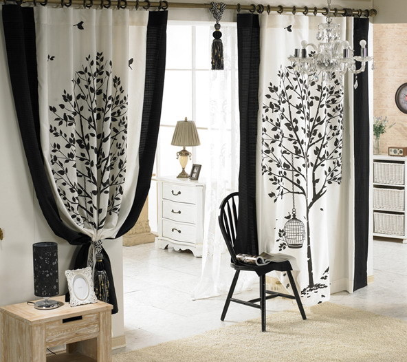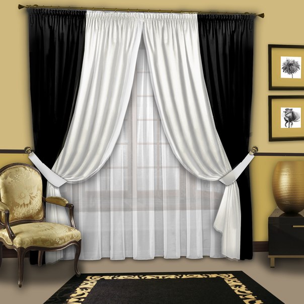 - Blanc Les couleurs noir et blanc créent un souffle expressif de lumière et d'obscurité. Cette technique est activement utilisée non seulement à l'intérieur, mais également dans les vêtements et le visage. Bien qu’il s’agisse d’une combinaison de couleurs très répandue et très répandue, elle a toujours l’air élégant et original. Des rideaux noirs et blancs en matériau épais et résistant s’adaptent à la chambre à coucher, au salon ou au hall.