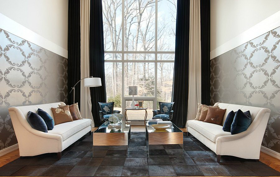 - Argent. Le duo raffiné d'argent et de noir est parfait pour une chambre à coucher, un salon ou un salon de style classique. Les ajouts d'argent donnent de la brillance et de la lumière à la gamme noire, que ce soit des motifs, des rayures argentées ou une combinaison de couleurs.