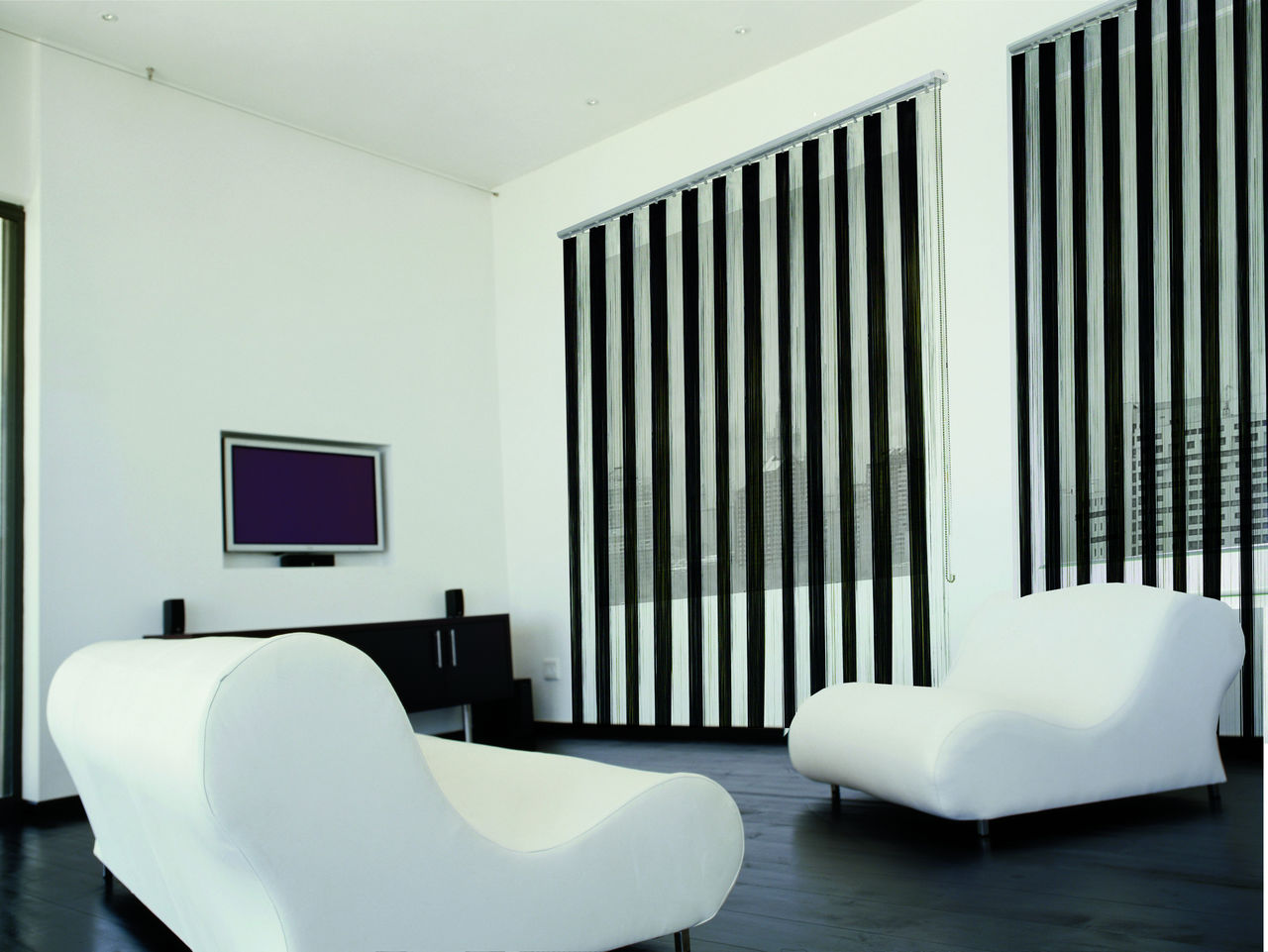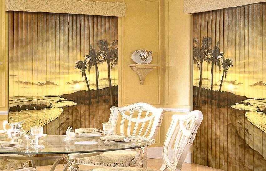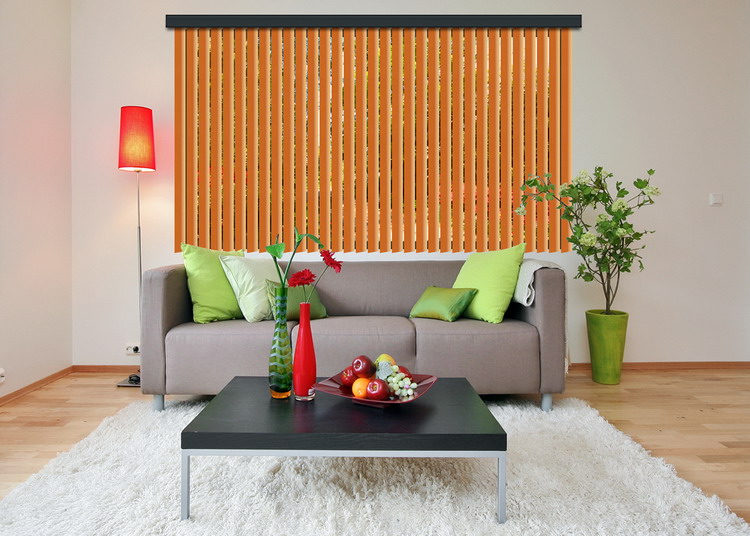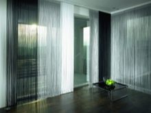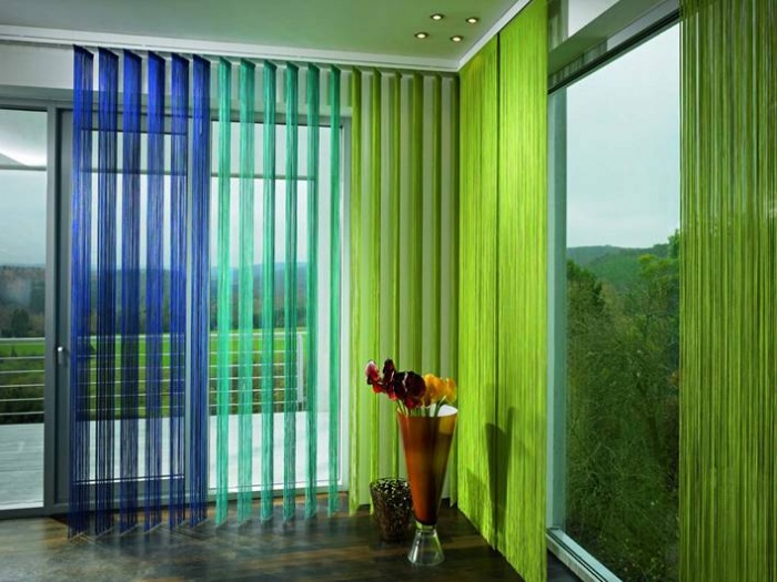 - Vertical remplit une fonction décorative. Leur largeur permet d'expérimenter des matériaux et des couleurs. Vous pouvez rencontrer des produits en tissu, plastique, aluminium, bois, bambou, combinés, rideaux photo 3D et modèles de fils (pluie, nouilles).