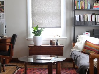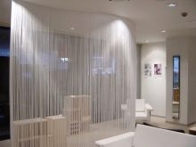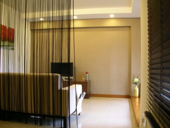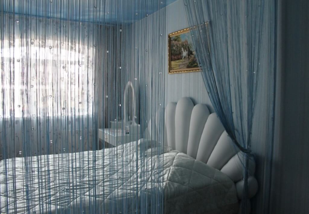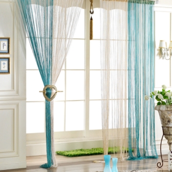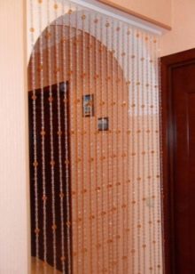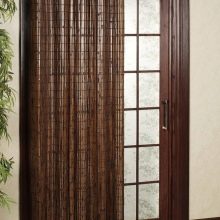 - Si vous devez séparer la pièce du couloir, vient à la rescousse stores-harmonica ou rideaux de corde. Les stores isolent complètement la pièce les uns des autres et le tissu en coton créera plus de légèreté et de légèreté.