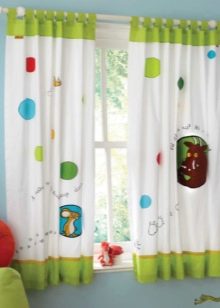 Il existe de nombreuses idées de conception avec un rideau de matériau intéressant. Des rubans, des rubans, des boutons et des pinces ont également été utilisés comme décoration supplémentaire.