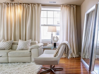 Une mise en garde importante: pour que les rideaux aient l'air parfait, la hauteur du plafond doit être d'au moins 3 mètres.