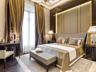 Rideaux dans la chambre devrait créer une atmosphère chaleureuse et relaxante. Il est important d’isoler cette zone des regards indiscrets et de choisir des tissus aussi imperméables que possible à la lumière. Dans le même temps, il convient de les combiner avec des voiles transparents. Si la chambre sert également de lieu de travail, les stores verticaux en tissus nobles ont une belle apparence, de élégants rideaux monochromes pouvant être verts (couleurs apaisantes), de tons bleu foncé, gris et marron, de stores plissés et de toutes les variations de tissu occultant.