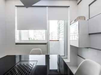 Le minimalisme, la techno, la haute technologie peuvent utiliser des volets roulants et des stores, des surfaces brillantes, en plastique et en métal.