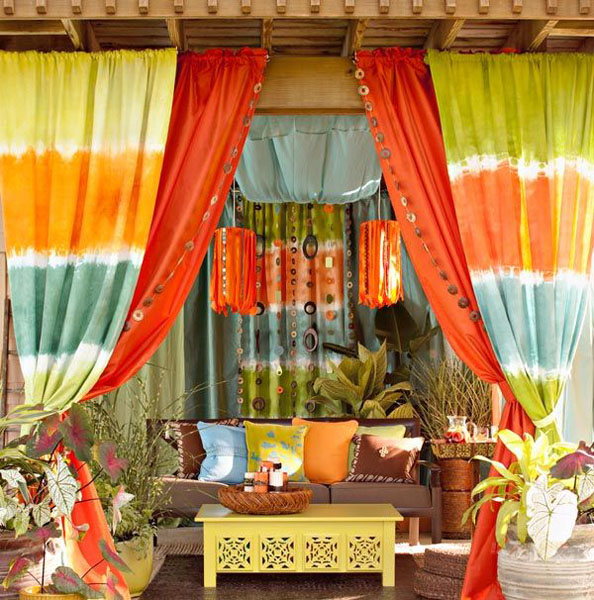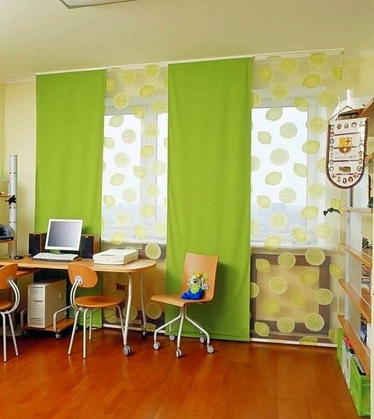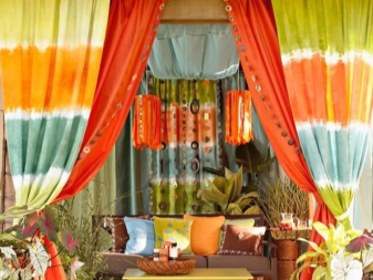 Fusion et pop art peuvent se permettre d'être brillants et inhabituels de manière provocante; rideaux japonais, stores, plis monochromes brillants, rideaux photo, rideaux en corde pour créer une atmosphère bohème, rideaux croisés.