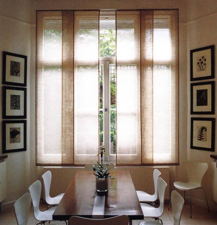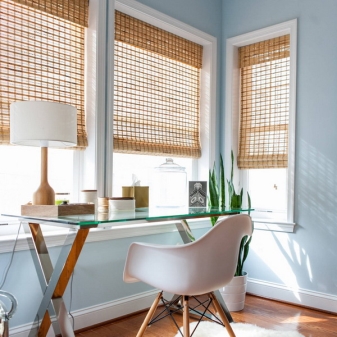 Comme leur nom l'indique, ils sont fabriqués à partir de matériaux naturels. Il en existe trois types: le tissu tissé, qui est enroulé sur la tige, les rideaux plissés et les rideaux verticaux, pliés en "accordéon". Ce dernier type est conçu pour les pièces de zonage et non pour les portes intérieures.