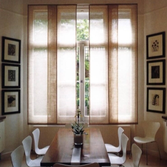 Selon le mode d’assemblage, ils peuvent être soit roulés, soit romains, mais ils ne sont pas fixés près de la fenêtre et ne consistent pas en une seule toile, mais en plusieurs qui sont indépendantes. Ils sont faits de beaux tissus translucides, rappelant le papier de riz, noués avec des rubans. Leur but principal est de décorer une fenêtre afin de couvrir un mauvais paysage.