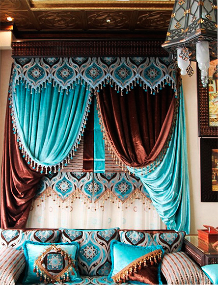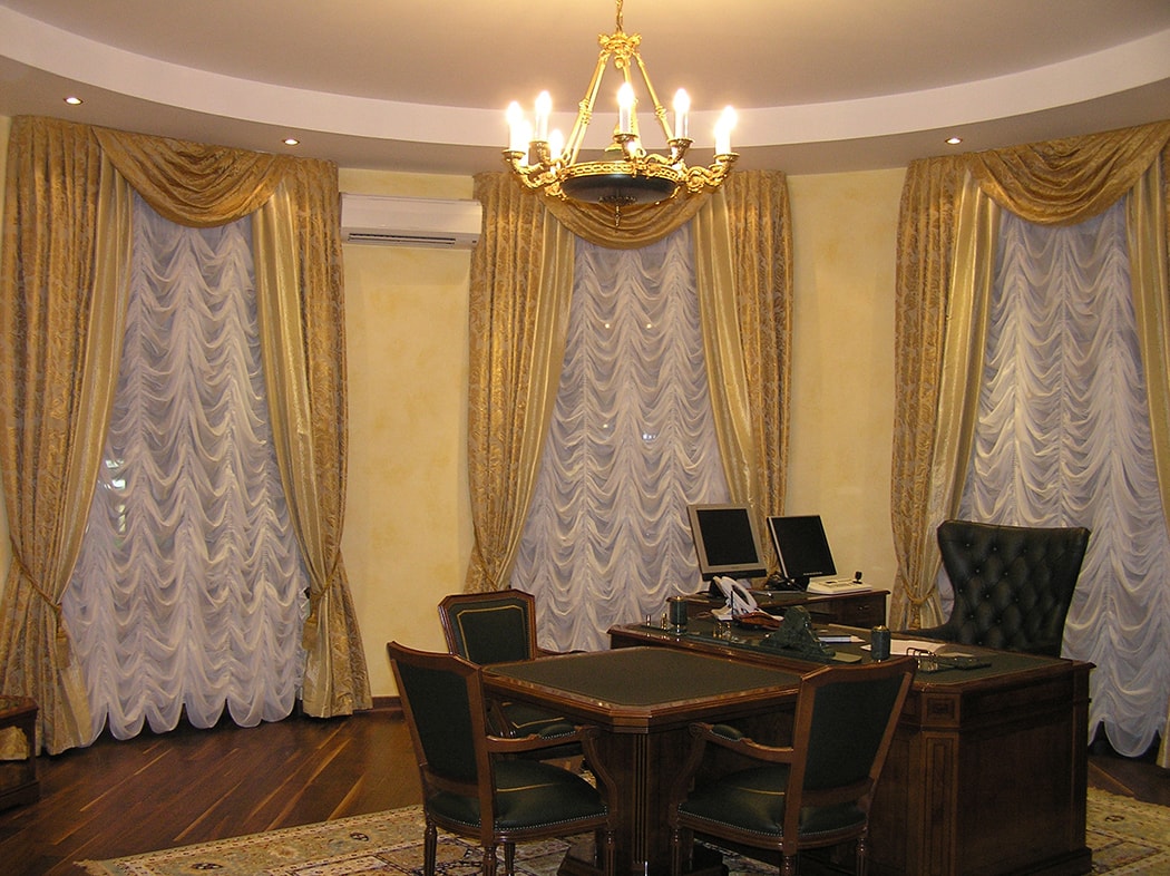 En ce qui concerne le choix du tissu, le choix de ce type de rideau revient à un choix coûteux et luxueux: la soie, le satin, le velours et d’autres matières nobles.