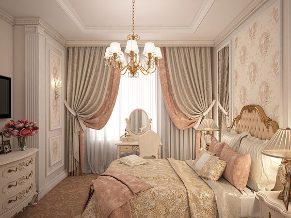 Le classique est universel pour tous les types de chambres. Elle diffère selon le type de tissu (par exemple, jacquard pour un salon et occultation pour une chambre à coucher), selon le mode de fixation: sur les boucles, les crochets, les oeillets (sur les anneaux), sur les liens, sur les cordons de serrage (sur les haltères), selon le mode de décoration: pinces, aimants, cordons, ruban de rideau.