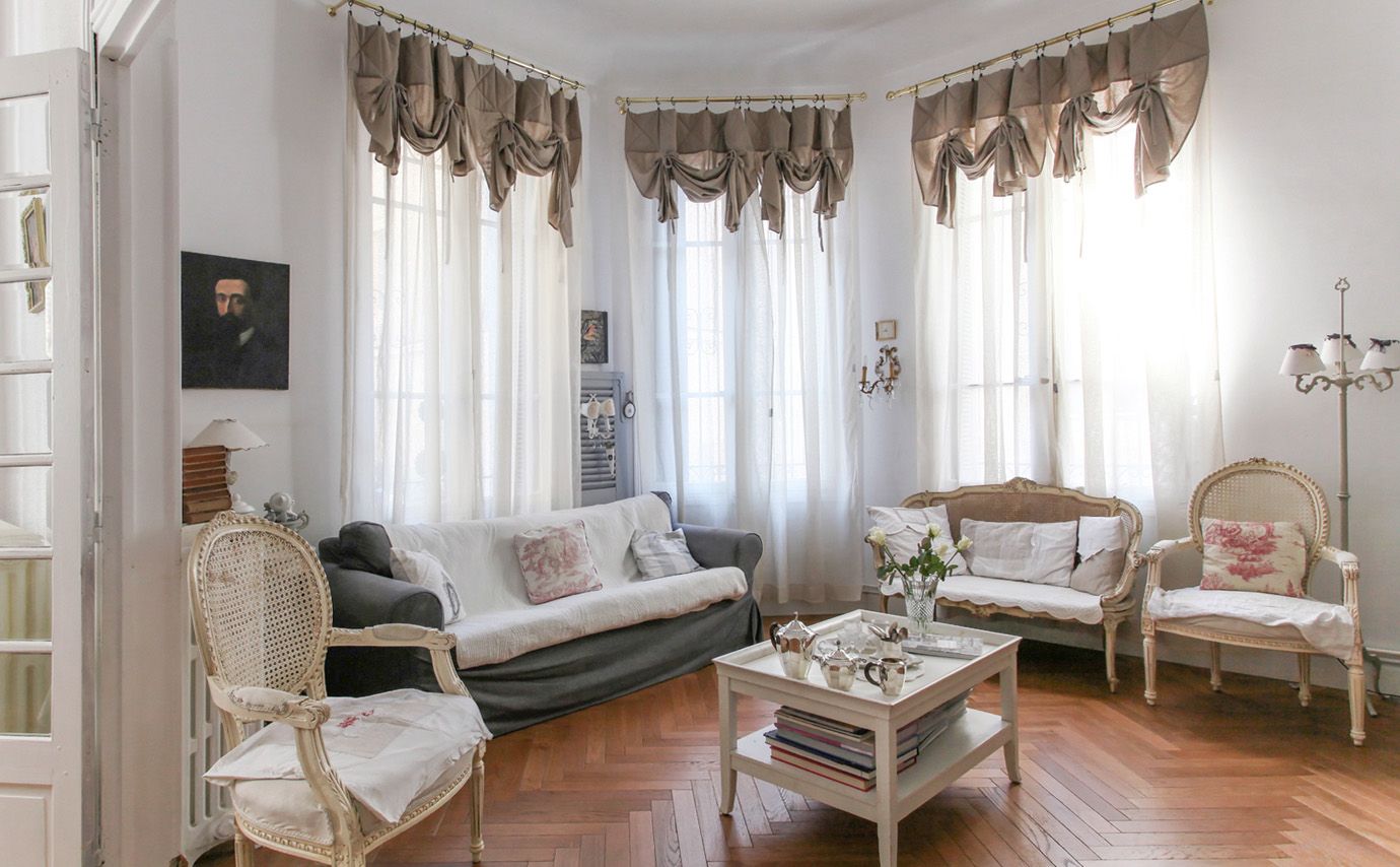 Si vous combinez les caractéristiques des rideaux classiques avec des rideaux lambrequin et festonnés, vous obtenez ce que l'on appelle communément les rideaux français. Ils se composent de deux tissus drapés verticaux et d’un détail horizontal ressemblant à un bandeau de pouf.