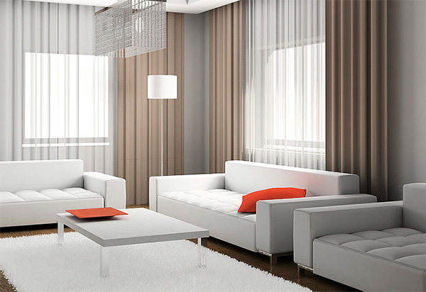 L'intérieur de luxe exige des tissus de qualité et de couleur appropriés. Les rideaux de velours de style australien, le lin en tapisserie anglaise, les tissus naturels et les stores en bois verticaux sont en mesure de lui donner l’aspect juste.