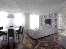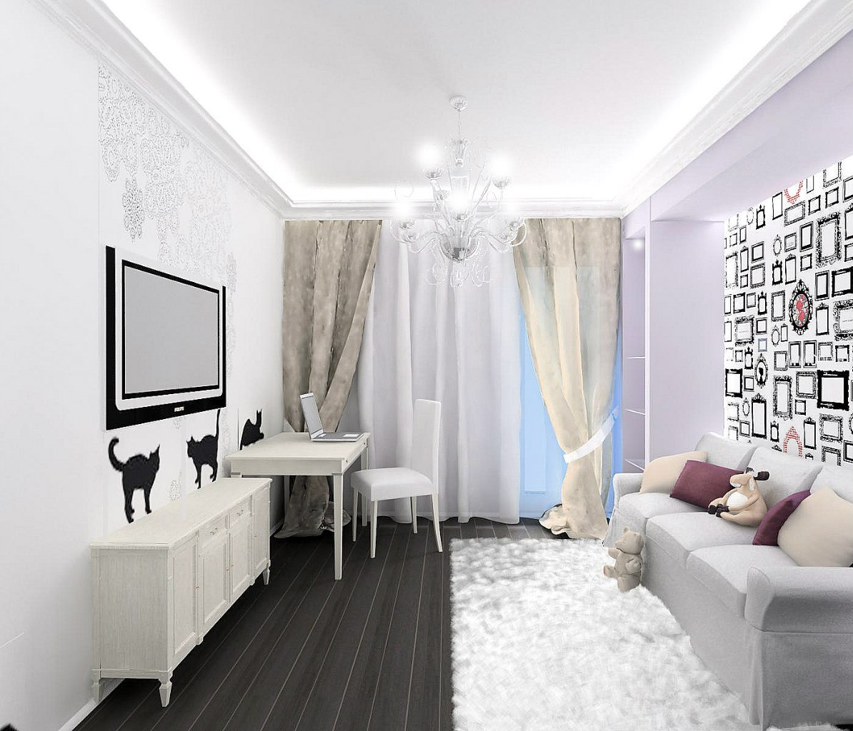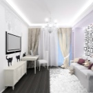 Si vous avez choisi le blanc comme couleur principale de la pièce, cela ne signifie pas pour autant que vous devez absolument capter des touches lumineuses. Un salon décoré en blanc, avec du papier peint et des rideaux, sera élégant et luxueux. La couleur blanche pure a toujours l'air chère.