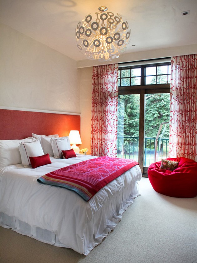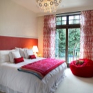 - La couleur rouge est très expressive, cette combinaison sera donc infructueuse pour la chambre à coucher, mais dans la cuisine ou dans la salle à manger, les rideaux rouges donneront de la vigueur à votre appétit.