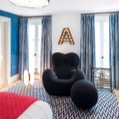 - Les couleurs sombres des rideaux offrent un contraste intéressant.
