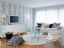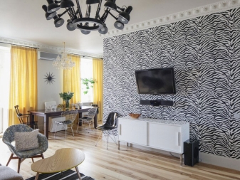 En réfléchissant à l’intérieur de la pièce, nous voulons réaliser une combinaison harmonieuse de matériaux de finition et de décor. Le socle doit être dans le ton des meubles, la table dans la couleur du sol, des rideaux du même matériau que les coussins du canapé. Il est important de connaître les principes de sélection des rideaux pour le papier peint, car leur incompatibilité gâchera l’apparence de la pièce.