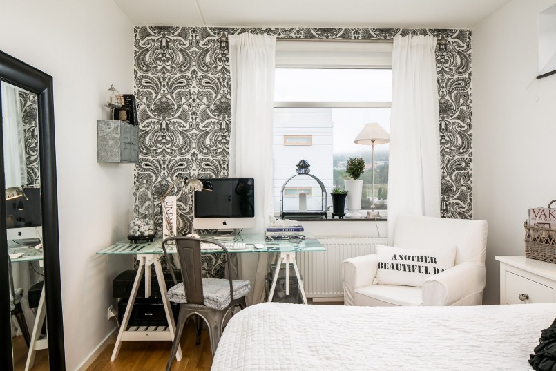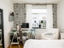 - Une texture ou un motif sur du papier peint blanc aidera à raviver et à diversifier l’intérieur.