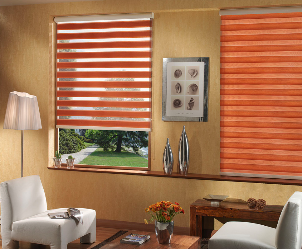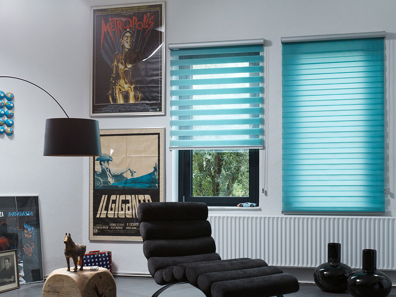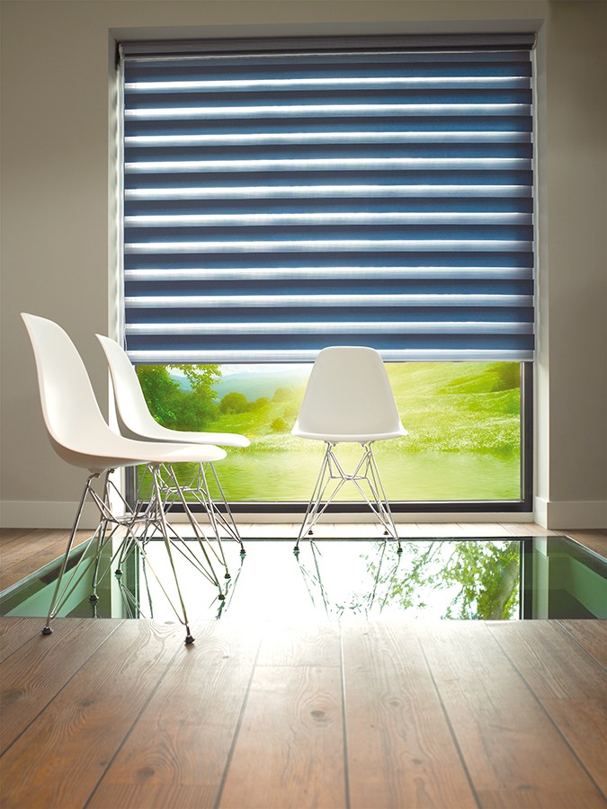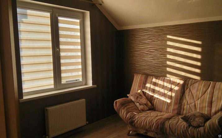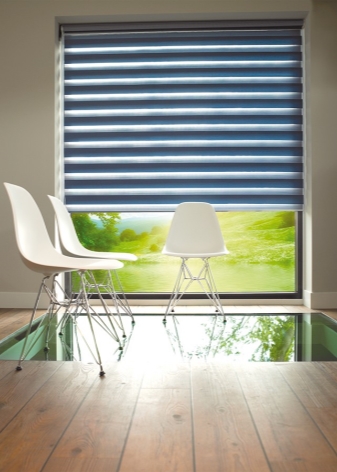 - "Jour-nuit" ou "zèbre" - La vue la plus intéressante à ce jour. Il s’agit d’une double toile alternant horizontalement des couleurs et des rayures transparentes (et les couleurs sont un peu plus larges). En tournant le rideau, vous pouvez soit rendre complètement la toile opaque (mode "nuit"), soit laisser les sommets nécessaires au passage de la lumière ("jour").