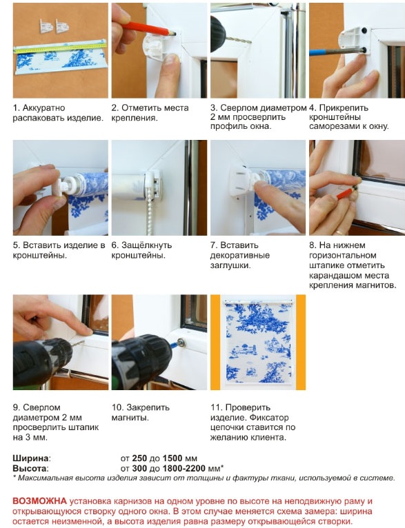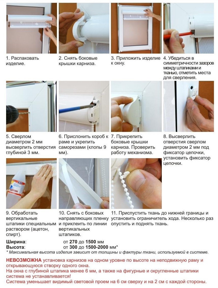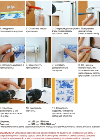 Pour UNI-1, la largeur des baguettes doit être supérieure à 10 mm, pour le sous-système «Besta» - à partir de 14 mm. Pour UNI-2, la largeur du shtapik n'a pas d'importance en raison de la fixation sur le cadre. De plus, ils peuvent être montés sur des fenêtres façonnées, tandis que UNI-1 - uniquement sur les formes rectangulaires classiques. De plus, les rideaux UNI-2 peuvent être ouverts non seulement de haut en bas, mais aussi de bas en haut.