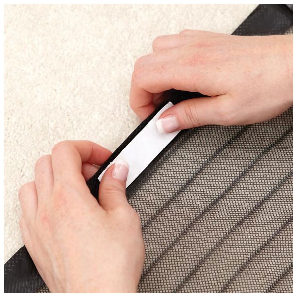 - Ensuite, vous devez coller du ruban adhésif double face sur les surfaces du rideau, qui sera fixé sur le passage d’entrée ou sur le cadre de la fenêtre, et vous devez appuyer très étroitement sur le maillage afin qu’il repose uniformément et en toute sécurité sur ce cadre.