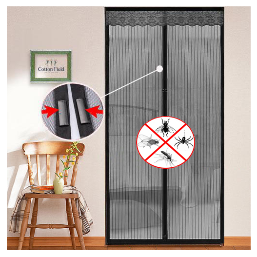 - Achat de rideau magnétique de moustique sur la porte, assurez-vous de prendre en compte la taille de la porte, car tous ces produits ne peuvent pas vous convenir. Essayez d’acheter des modèles très précis, jusqu’à quelques millimètres, s’adaptant à la taille de votre fenêtre ou de votre porte, sinon ce produit ne remplira pas ses tâches principales.