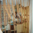 - Les fils plats dans les rideaux sont appelés "nouilles".Leur caractéristique est une plus grande opacité que tous les autres modèles. Souvent, un tel modèle de corde est complété par des perles en bois ou en plastique du même style.