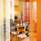 - Les textiles sous forme de fils laissent entrer beaucoup de lumière dans la pièce. Par conséquent, avant de choisir de tels rideaux sur les fenêtres, considérez l'éclairage de la pièce. Si les fenêtres donnent à l'est ou au sud, il n'est pas toujours conseillé de les éclairer abondamment, surtout s'il s'agit d'une chambre à coucher. Les motifs de fil ne protègent pas du soleil insidieux du matin.