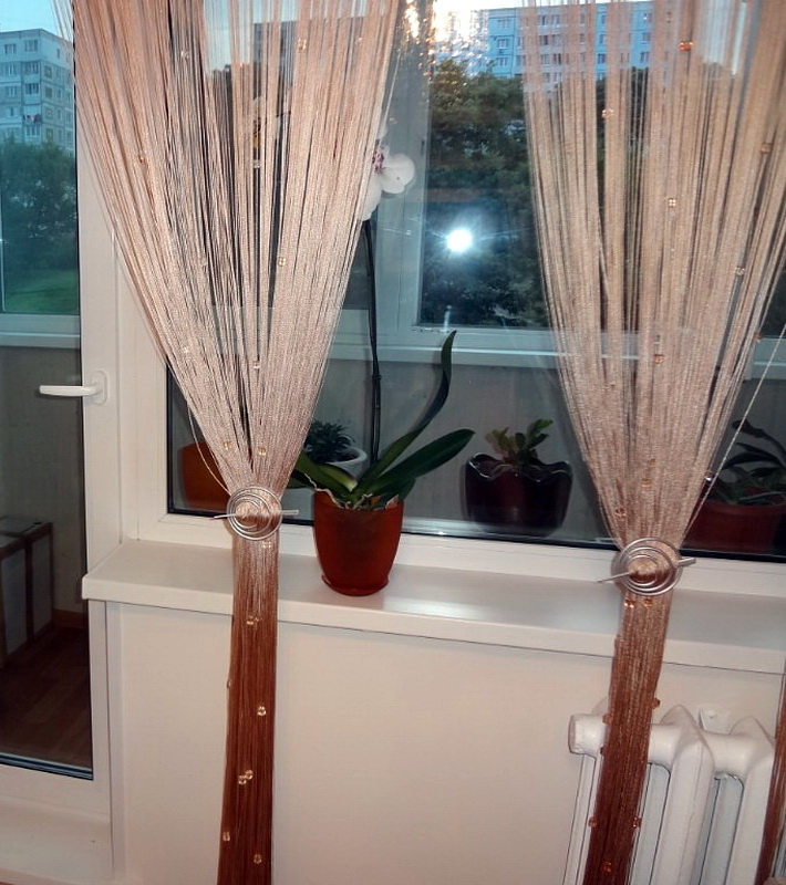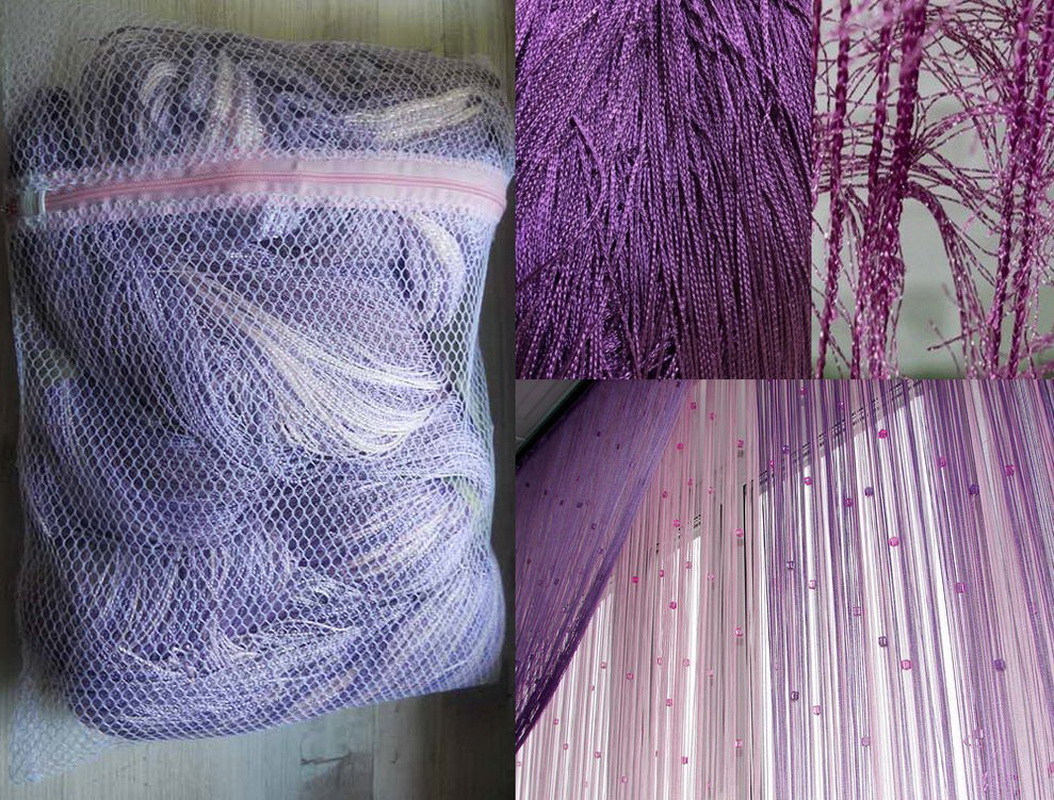 - De tels rideaux ne sont pas sombres. Si les modèles classiques doivent être supprimés de toute urgence, les produits en fils ne nécessitent pas de nettoyage à la hâte, à l'exception des couleurs très claires. Si les rideaux ne sont pas en tissu, le nettoyage pose moins de problèmes.